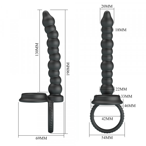 Насадка для двойного проникновения "Pretty Love Dillion" рельефная, черная