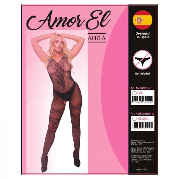 Кетсьют с пикантным вырезом "Amor El Anita" черный, S/L