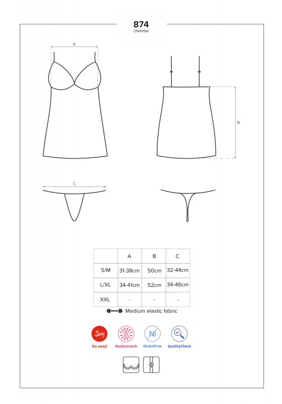 В комплект входят миниатюрные трусики-стринги из вискозы, прекрасно гармонирующие с пеньюаром
